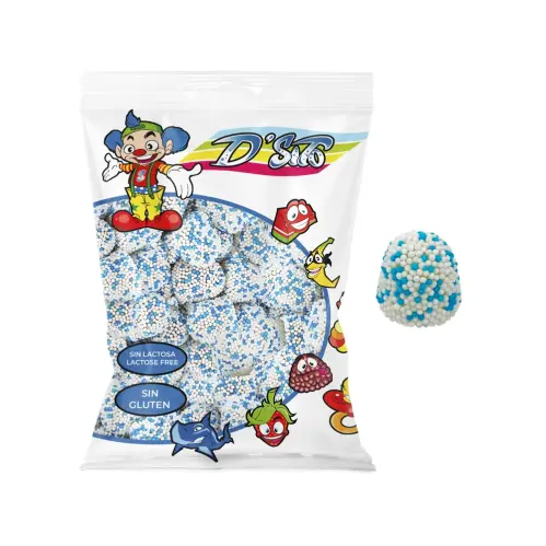 Blåa bollar med socker! D'Sito är gelégodiset med mjuk gelé inuti täckt med ett lager pärlsocker. Mjuka, söta och färgglada - laktosfria och glutenfria. Perfekt för barn som vill ha något färgglatt och annorlunda, eller till kalas och fester! 💙✨