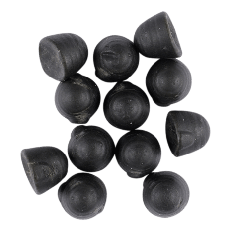 Socker, glukossirap, majsstärkelse, modifierad majsstärkelse, maltodextrin, gelatin, salmiaksalt, emulgeringsmedel (E414), färg (E153), honungssirap 0,5%, aromer, lakritsrotsextrakt, mörk sirap, glaseringsmedel (karnaubavax). Näringsinformation: Per 100g. Energi: 1527kJ/359kcal / Fett: <0,5g / Varav mättat fett: 0,1g / Kolhydrater: 84g / Varav sockerarter: 55g / Protein: 4,9g / Salt: 0,02g.