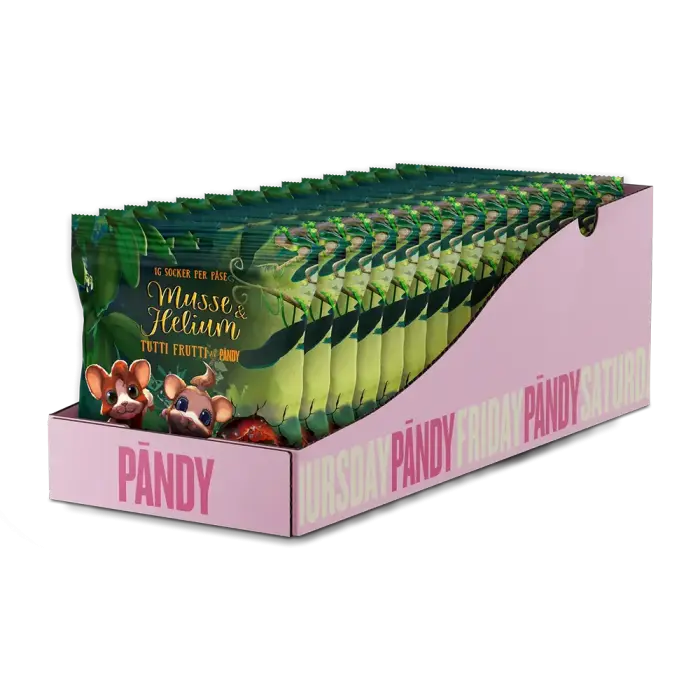 BeskrivningförPändy Candy Musse & Helium Tutti Frutti 50g x 14st
