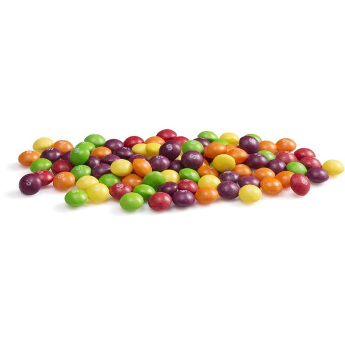 SKITTLES Fruits ger dig chansen att Taste the Rainbow, med en mängd olika fruktsmaker nästan för bra för att vara sant. Smaker inkluderar jordgubbar, grönt äpple, vindruvor, citron och apelsin. Nu med storpack på 1.6 kg!