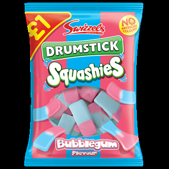 Swizzels Drumstick Squashies är mjuka gelégodisar som har både en fantastisk smak och en otroligt trevlig konsistens. Dessa har den klassiska och nostalgiska smaken bubblegum som tar dig tillbaka till barndomen! De innehåller dessutom inga artificiella färgämnen. Älskade av både stora och små!