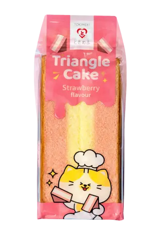 Trekantkake med jordbær! Triangle Cake Strawberry Flavour er den asiatiske kaken med søt jordbærsmak. Myk, luftig og rosa med fruktig jordbær - perfekt balanse mellom kake og bær. Perfekt som mellommåltid eller til kaffen! 🍓🍰